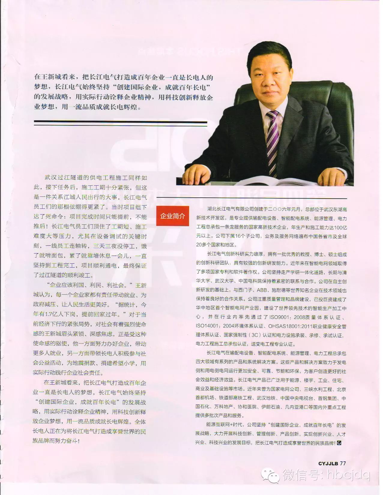 长江电气董事长王新城接受《创业家俱乐部》杂志专访