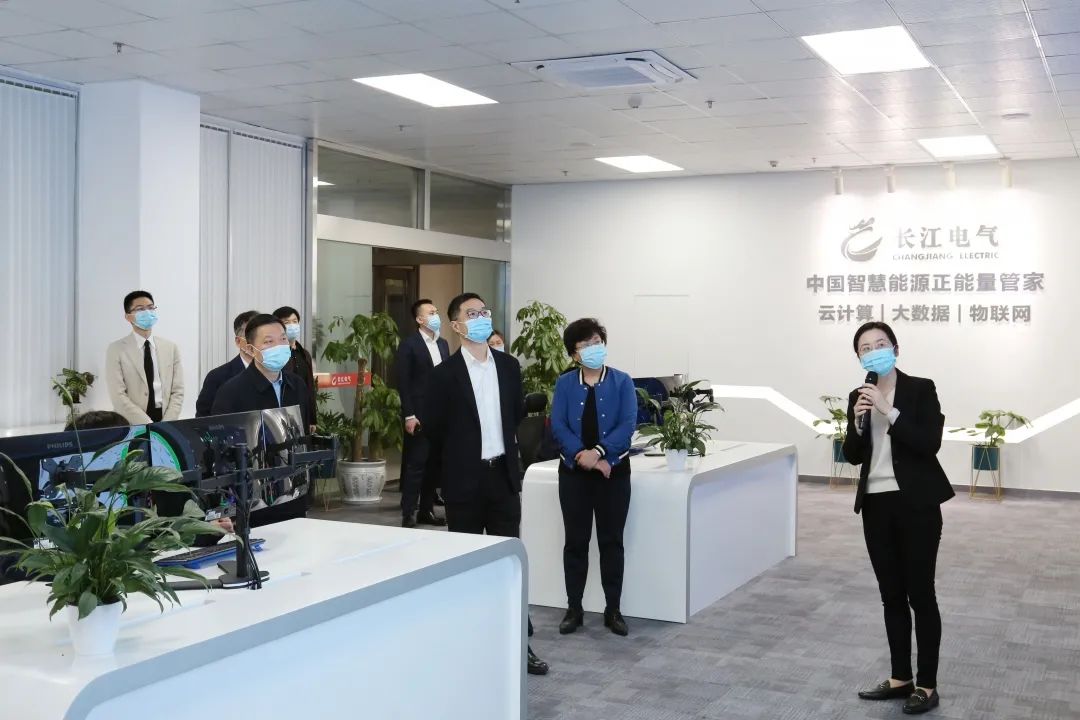 宁咏一行先后参观长江电气“中国智慧能源正能量”星空电子展厅、智慧能源管理运营中心,深入长江电气智能车间一线,了解企业生产情况。长江电气党委书记、董事长王新城代表企业向各位领导的到来表示热烈欢迎,并详细介绍企业十五年发展成果、复工复产情况及发展过程中遇到的困难及建议。