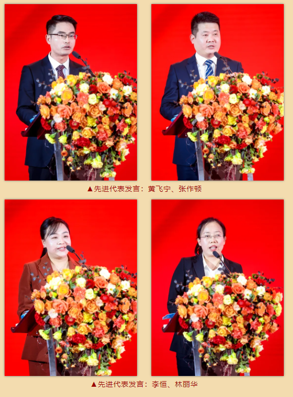 心之所系,行之所至。在先进代表发言环节,“稳健发展”杰出创业家——创业一公司总裁王明城、“科学管理”优秀创业家——创业八公司总裁陈友安、创业标杆处长——创业十七公司总裁王娟(原创业十一公司三处总经理)、创业三公司五处总经理王宏涛,“杰出管理者”——智造公司总裁黄飞宁、工程公司总裁张作顿,“优秀管理者”代表——监察办总经理李恒,“优秀基层管理者”代表——科技中心电气二部主任林丽华,依次作精彩发言,鼓励全体员工争做勇担当、善作为的新时代星空电子人。
